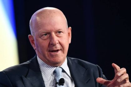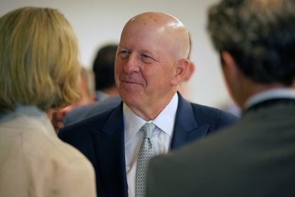 David Solomon (centre), Chief Executive Officer of Goldman Sachs during an event attended by Prime Minister Rishi Sunak at the…